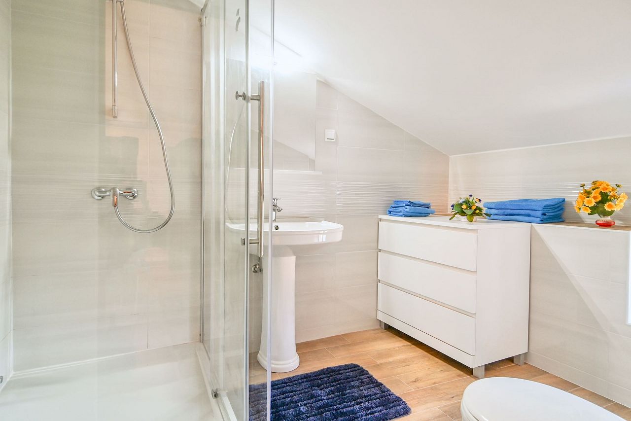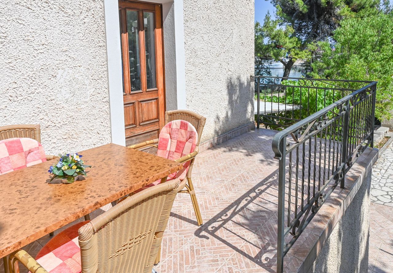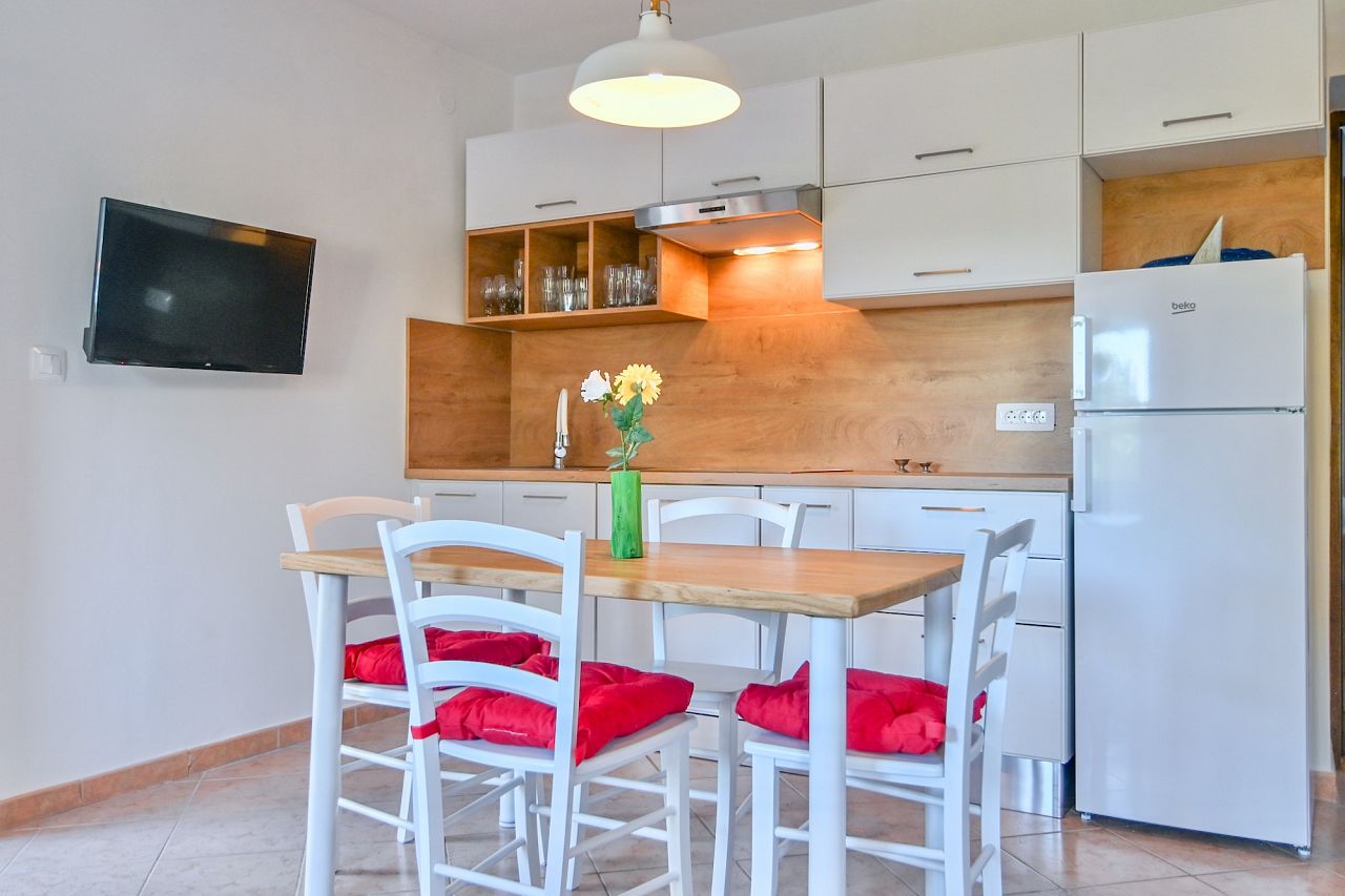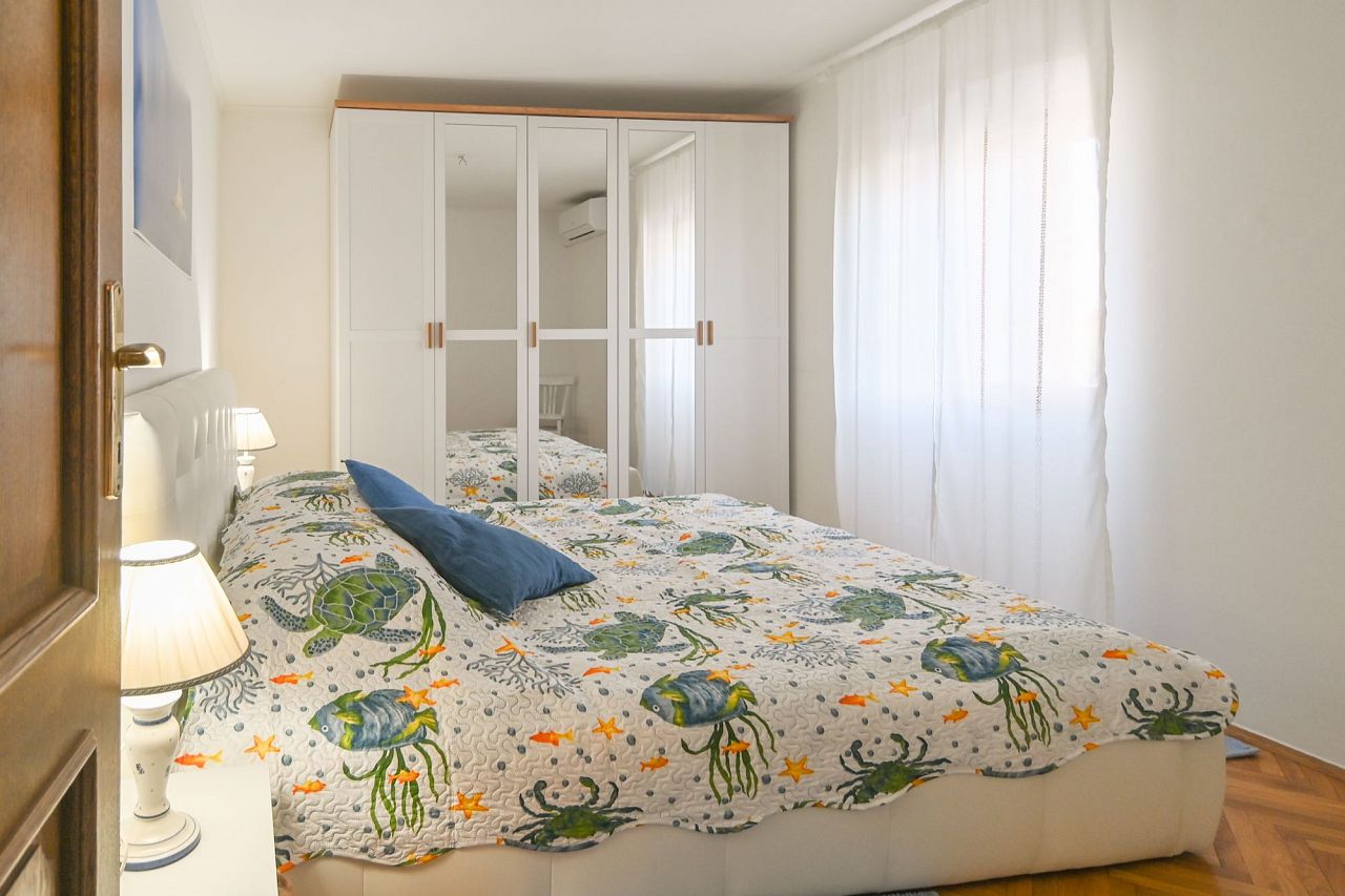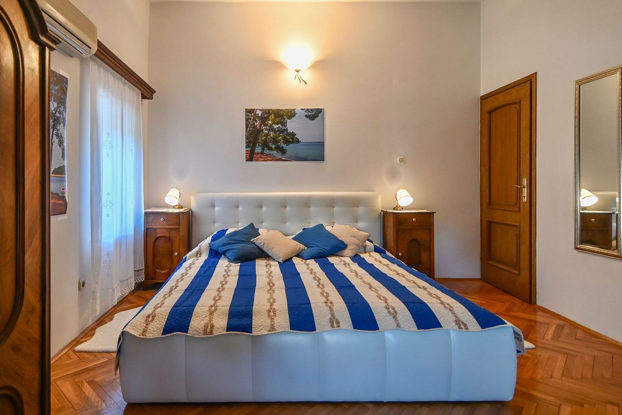 Die in 2023 komplett renovierte Wohnung liegt in freistehendem Haus in ruhiger Lage, nur 40m vom Meer entfernt. Die Wohnung hat einen eigenen Eingang und eine angenehme Terrasse mit Meerblick. Klima und Internet sind kostenlos. Die Wohnung hat 2 Schlafzimmer und 2 Badezimmer. Die Küche mit Wohnraum, ein Schlafzimmer, ein Badezimmer und eine Terrasse dominieren in der 1. Etage. Die Innentreppen führen in die 2. Etage, wo sich noch ein Schlafzimmer und ein Badezimmer befinden. Die Küche ist voll ausgestattet. Auf dem Garten steht Ihnen das Grill zur Verfügung. Parkplatz direkt vor dem Haus.