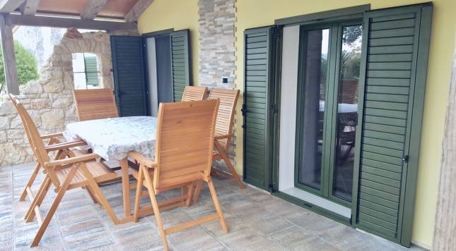 Klimatisierte Wohnung mit eigenem Eingang im Erdgeschoß. Die Wohnung hat einen eigenen Garten, der nur für Ihren Gebrauch ist. Alleinstehendes Haus in ruhiger Lage, nur 350 Meter vom Strand entfernt. Klima und Internet sind kostenlos. Den Garten um das Haus und Grill können Sie frei benutzen. Die Küche ist voll ausgestattet, mit Spülmaschine. In der Wohnung steht auch die Waschmaschine zur freien kostenlosen Verfügung. Den Parkplatz für Ihren Wagen gibt es direkt vor dem Haus sicher auf dem eingezäunten Grundstück. Das Objekt hat mehrere Unterkunftseinheiten, so ist es möglich, dass sich während Ihres Urlaubes auch andere Gäste dort befinden werden. Die Hausbesitzer werden während Ihres Urlaubes im Objekt wohnen.