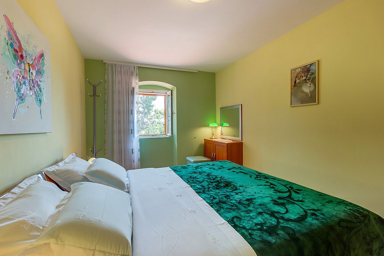 Das Haus liegt im beliebten Ferienort Nerezine auf der Insel Lošinj. Lebhafter Hafenort mit großartiger Bergkulisse auf der Insel Lošinj. Die überwiegend grüne und sehr buchtenreiche Insel Losinj verdankt ihre subtropisch anmutende Vegetation vieler Generationen von Seefahrern, die zahlreiche exotische Pflanzen als Mitbringsel aus fernen Ländern in die Heimat brachten und Parks mit Palmen, Agaven, Oleander und Orangenbäumen anlegten. Das idyllische Fischerdorf Nerezine ist ein beliebter Ferienort für Bootsbesitzer und Naturliebhaber, die von hier aus zu erlebnisreichen Touren über die Insel starten können. Entlang der Hafenpromenade befindet sich auch das Zentrum der touristischen Infrastruktur, das mit einem Einkaufszentrum mit Supermarkt, Restaurants und Cafés keine Wünsche offen lässt. Wer es lieber etwas ruhiger und authentischer mag, findet im alten Dorfkern mit dem an eine italienische Piazza erinnernden und von alten Bäumen umstandenen Hauptplatz malerisches inseltypisches Flair, dem die Cafés und angenehm überschatteten Bänke noch zusätzlichen Charme verleihen.