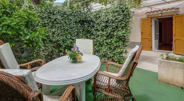 Geräumiges klimatisiertes Zimmer mit uppiger angenehmen Terrasse im Erdgeschoß. Eigener Eingang. Internet und Klima sind kostenlos. im freistehenden Haus in ruhiger Lage gelegen. Sie können jederzeit den Grill am Haus gebrauchen. Im Haus gibt es noch eine Ferienwohnung, ein Studio und ein Zimmer. Die Gastgeberfamilie lebt im Haus. Den Parkplatz für Ihren Wagen gibt es direkt vor dem Haus.