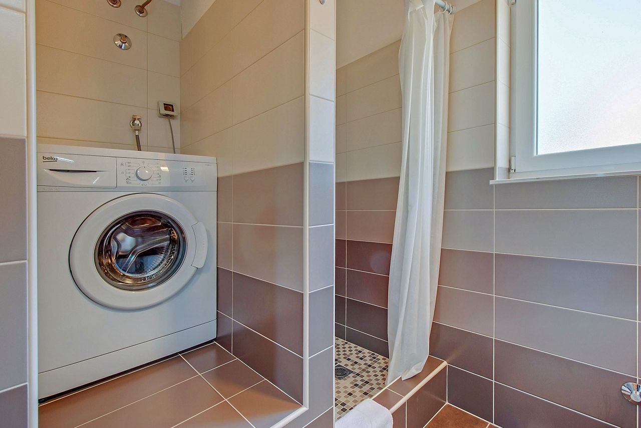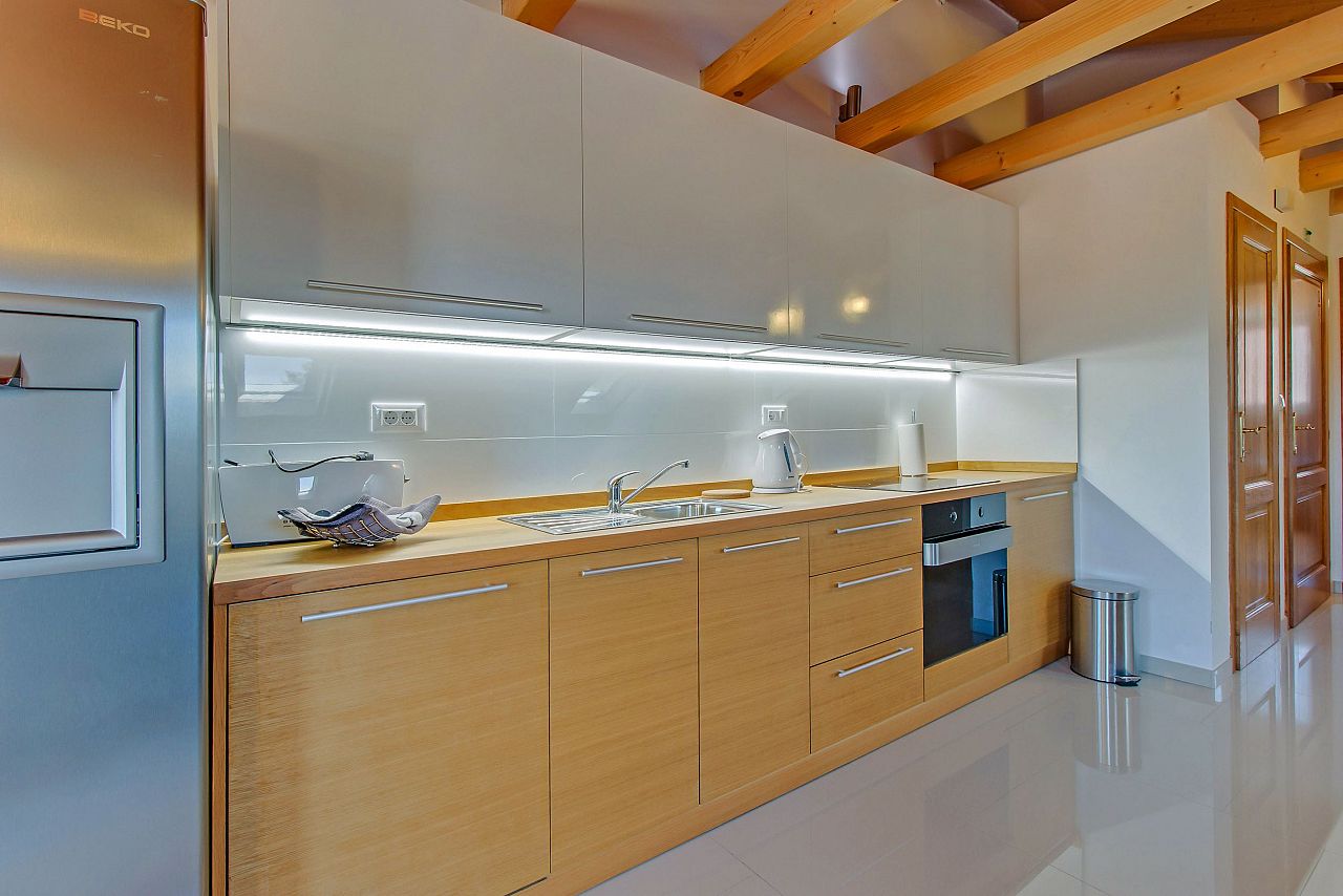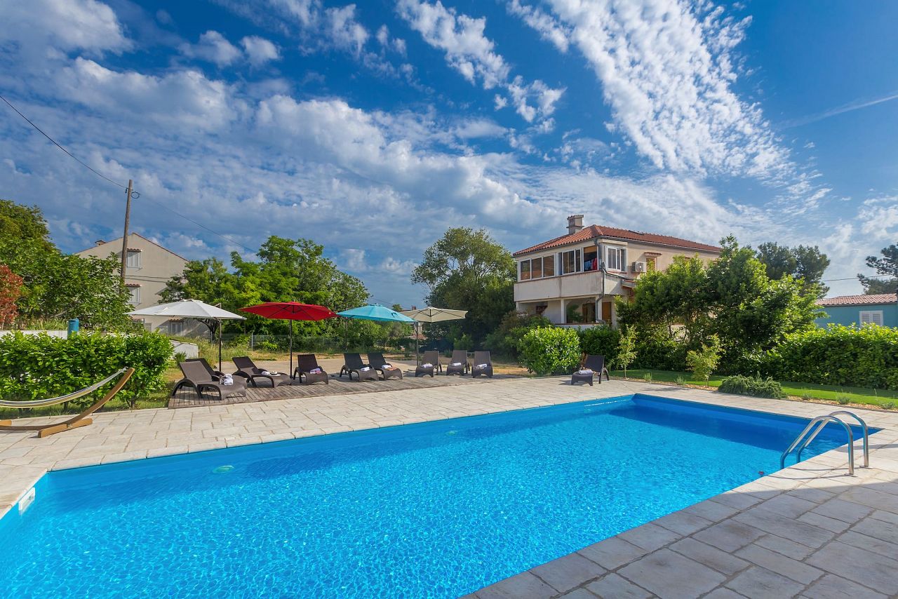 Geräumige klimatisierte Wohnung mit angenehmer überdachtenTerrasse mit Meerblick. Das Herzstück des Hauses ist der erfrischende große Pool 11m x 4,5m. Der Pool hat Reinigung auf Salz, anstatt auf Chlor, was hautfreundlicher ist. Sonnenliegen und eine Außendusche am Pool. Freistehendes Haus. Klima und Internet sind kostenlos. Die Küche ist voll ausgestattet, mit großem amerikanischen Kühlschrank. Die Waschmaschine im Badezimmer. Die Wohnung liegt im 1. Stock. Im Haus gibt es noch 3 Ferienwohnungen. Den Pool teilt man mit noch 5 Parteien (es gibt insgesamt 6 Ferienwohnungen in den zwei Häusern). Parkplatz direkt vor dem Haus.