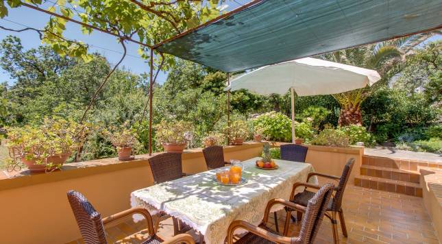 Geräumige klimatisierte 2 Schlafzimmer-Wohnung im freistehenden Haus, nur 300m vom Strand entfernt. Mit SAT-TV, in ruhiger Lage. Den Garten um das Haus und Grill können Sie frei benutzen. Die Wohnung ist auf 2 Etagen verteilt: im Erdgeschoß gibt es die Küche, im Obergeschoß sind die beide Schlafzimmer und Badezimmer. Im Haus gibt es nur noch eine Ferienwohnung. Die Gastgeberfamilie lebt nicht im Haus. Den Parkplatz für Ihren Wagen gibt es direkt vor dem Haus.