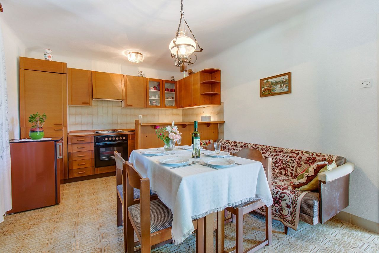 Das Haus liegt im beliebten Ferienort Nerezine auf der Insel Lošinj. Lebhafter Hafenort mit großartiger Bergkulisse auf der Insel Lošinj. Die überwiegend grüne und sehr buchtenreiche Insel Losinj verdankt ihre subtropisch anmutende Vegetation vieler Generationen von Seefahrern, die zahlreiche exotische Pflanzen als Mitbringsel aus fernen Ländern in die Heimat brachten und Parks mit Palmen, Agaven, Oleander und Orangenbäumen anlegten. Das idyllische Fischerdorf Nerezine ist ein beliebter Ferienort für Bootsbesitzer und Naturliebhaber, die von hier aus zu erlebnisreichen Touren über die Insel starten können. Entlang der Hafenpromenade befindet sich auch das Zentrum der touristischen Infrastruktur, das mit einem Einkaufszentrum mit Supermarkt, Restaurants und Cafés keine Wünsche offen lässt. Wer es lieber etwas ruhiger und authentischer mag, findet im alten Dorfkern mit dem an eine italienische Piazza erinnernden und von alten Bäumen umstandenen Hauptplatz malerisches inseltypisches Flair, dem die Cafés und angenehm überschatteten Bänke noch zusätzlichen Charme verleihen.