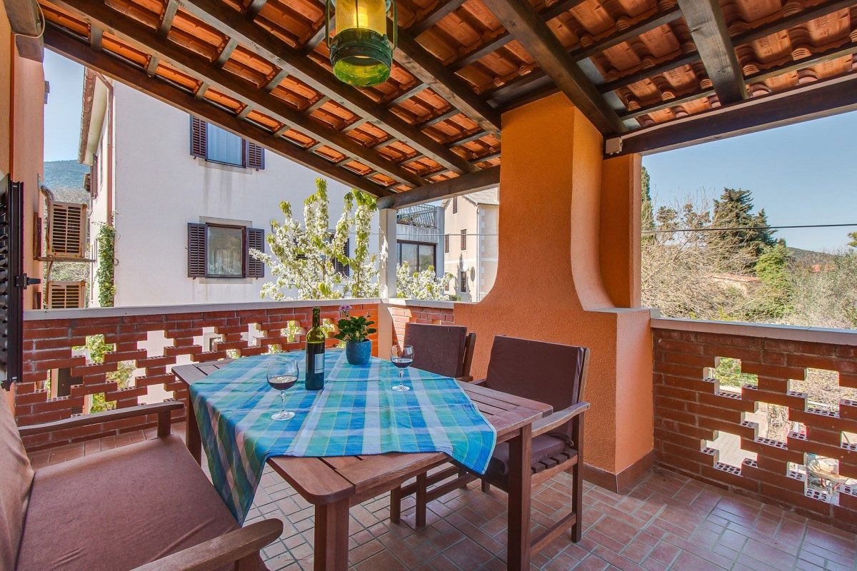 Das Haus liegt im beliebten Ferienort Nerezine auf der Insel Lošinj. Nerezine ist ein lebhafter Ort mit großartiger Bergkulisse auf der Insel Lošinj. Auf der Insel Lošinj kann man einen Tümmler adoptieren und benennen. Die Insel hat etwa 2600 Sonnenstunden. Auf den Inseln Lošinj und Cres gibt es keine giftige Schlangen. Auf 5 Inseln gibt es über 250 km Spazier- und Waldwege. Auf dem Gebiet des Archipels Cres-Lošinj sind etwa 1200 Pflanzenarten registriert worden. Die überwiegend grüne und sehr buchtenreiche Insel verdankt ihre subtropisch anmutende Vegetation vieler Generationen von Seefahrern, die zahlreiche exotische Pflanzen als Mitbringsel aus fernen Ländern in die Heimat brachten und Parks mit Palmen, Agaven, Oleander und Orangenbäumen anlegten. Das idyllische Fischerdorf Nerezine ist ein beliebter Ferienort für Bootsbesitzer und Naturliebhaber, die von hier aus zu erlebnisreichen Touren über die Insel starten können. Entlang der Hafenpromenade befindet sich auch das Zentrum der touristischen Infrastruktur, das mit einem Einkaufszentrum mit Supermarkt, Restaurants und Cafés keine Wünsche offen lässt. Wer es lieber etwas ruhiger und authentischer mag, findet im alten Dorfkern mit dem an eine italienische Piazza erinnernden und von alten Bäumen umstandenen Hauptplatz malerisches inseltypisches Flair, dem die Cafés und angenehm überschatteten Bänke noch zusätzlichen Charme verleihen. Hier hat man eine 120-jährige touristische Tradition, das erste Hotel in Mali Losinj ist im Jahre 1887 errichtet worden.