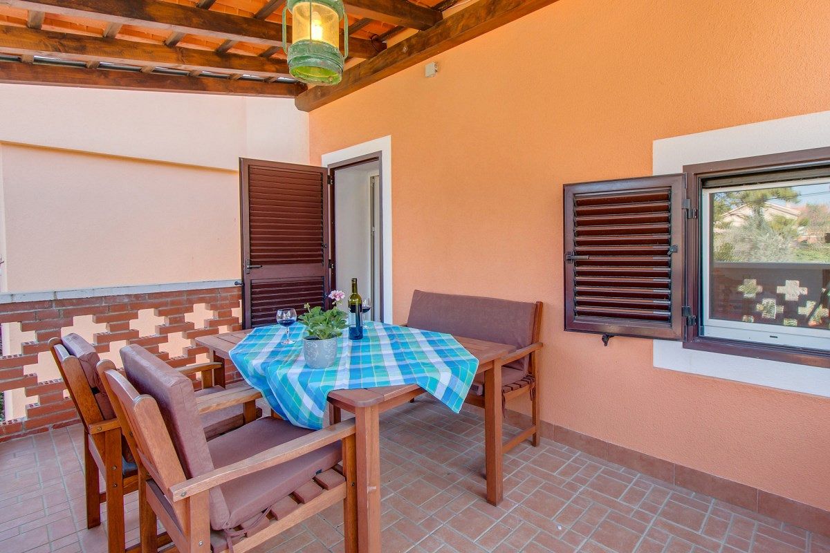 Geräumige Wohnung mit 2 Schlafzimmer im freistehenden Haus. Klima und Internet sind kostenlos. Das Haus liegt nur 150m vom Strand entfernt. Die Wohnung ist auf zwei Etagen gegliedert: die Küche, das erste Schlafzimmer und die Terrasse liegen im ersten Stock, das zweite Schlafzimmer und das Badezimmer liegen im zweiten Stock. Den gesamten Grundstück um das Haus und den Grill können Sie jederzeit frei benutzen. Im Haus gibt es noch eine Ferienwohnung. Die Gastgeberfamilie lebt im Haus daneben. Den Parkplatz für Ihren Wagen gibt es direkt vor dem Haus.