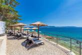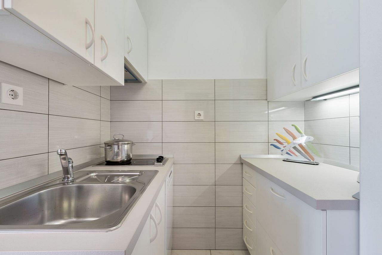 Das Herzstück der Wohnung ist die Terrasse mit herrlichem Meerblick. Ihnen steht ein Schlafzimmer, ein Badezimmer und eine voll ausgestattete Küche mit Geschirrspüler, Kaffeemaschine usw. zur Verfügung. Klima und Internet sind kostenlos. Die Ferienwohnung befindet sich auf einem 1150 qm großen, geschlossenen Gartengrundstück mit Wiese, Blumen und Bäumen, der Garten ist eingezäunt. Das Haus ist ruhig gelegen. Parkplatz direkt vor dem Haus. Im Haus steht Ihnen die Waschmaschine zur Verfügung. Der Ort hat einen schönen Strand mit kristallklarem Meer. Ein gutes Restaurant ist 200 m entfernt.