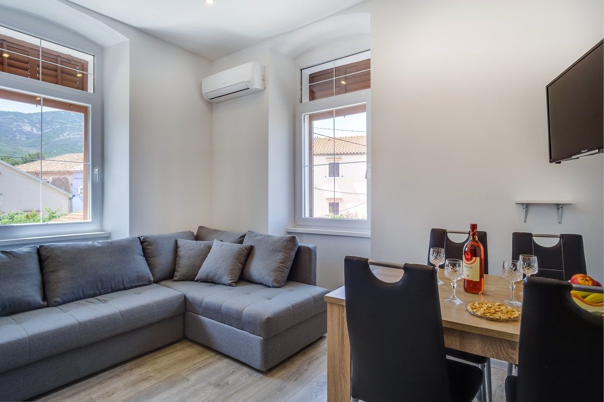 Das Haus liegt im beliebten Ferienort Nerezine auf der Insel Lošinj. Lebhafter Hafenort mit großartiger Bergkulisse auf der Insel Lošinj. Die überwiegend grüne und sehr buchtenreiche Insel Losinj verdankt ihre subtropisch anmutende Vegetation vieler Generationen von Seefahrern, die zahlreiche exotische Pflanzen als Mitbringsel aus fernen Ländern in die Heimat brachten und Parks mit Palmen, Agaven, Oleander und Orangenbäumen anlegten. Das idyllische Fischerdorf Nerezine ist ein beliebter Ferienort für Bootsbesitzer und Naturliebhaber, die von hier aus zu erlebnisreichen Touren über die Insel starten können. Entlang der Hafenpromenade befindet sich auch das Zentrum der touristischen Infrastruktur, das mit einem Einkaufszentrum mit Supermarkt, Restaurants und Cafés keine Wünsche offen lässt. Wer es lieber etwas ruhiger und authentischer mag, findet im alten Dorfkern mit dem an eine italienische Piazza erinnernden und von alten Bäumen umstandenen Hauptplatz malerisches inseltypisches Flair, dem die Cafés und angenehm überschatteten Bänke noch zusätzlichen Charme verleihen.