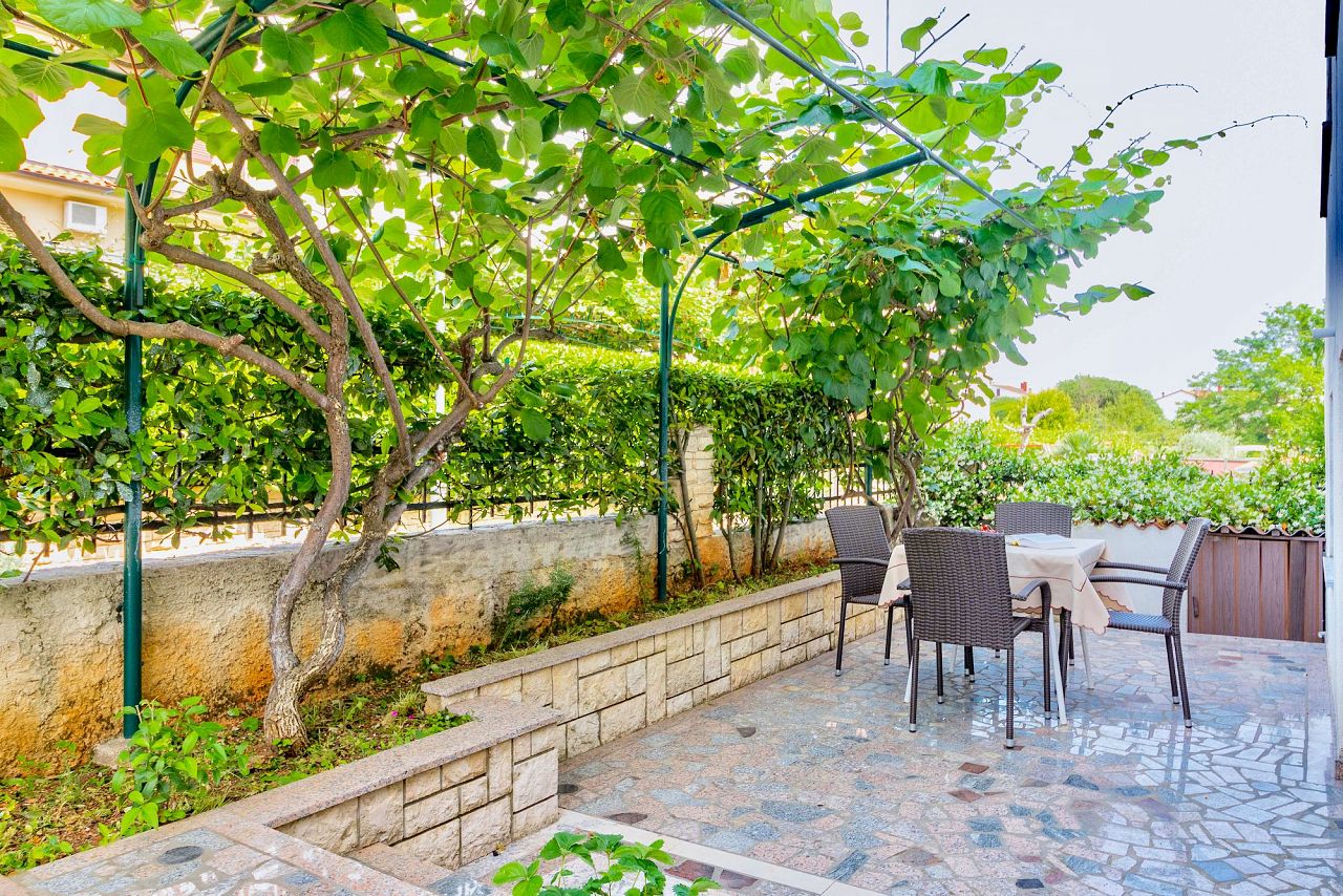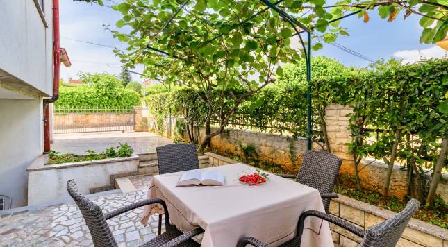Die Wohnung im Ergeschoß mit 2 Zimmer (davon 1 Schlafzimmer) liegt im ruhigen Teil des Ortes Rovinj, am bekannten Strand Cuvi. Die Wohnung hat eine angnehme Terrasse mit Gartengarnitur. Das Interieur ist komplett ausgestattet und verfügt über die komplett ausgestattete Küche. Fernseher mit SAT-Anlage, die auch deutsche Programme empfängt. Klima und Internet sind kostenlos. Schlafen: 2 Personen im Schlafzimmer, andere zwei Personen auf der Schlafsofa in der Küche. Den Parkplatz für Ihren Wagen gibt es direkt vor dem Haus.