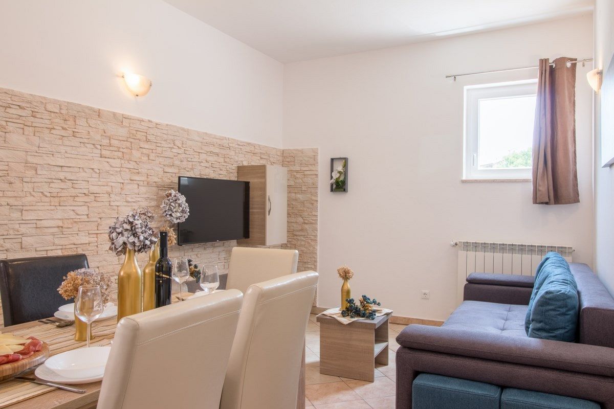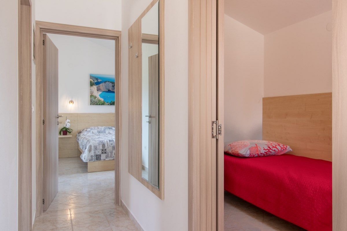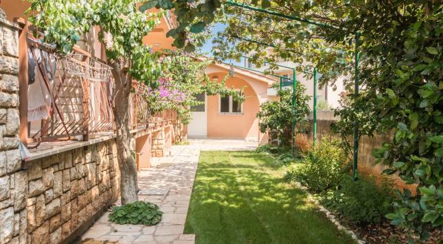 Die Wohnung mit 2 Schlafzimmer und einem eigenen Eingang, die sich im Erdgeschoß des ruhig gelegenen Hauses befindet, das auf dem riesengroßen Grundstück von 2400 qm steht. Wohnung hat einen eigenen kleineren Garten, der nur für Ihren Gebrauch ist. Außerdem dürfen Sie den gesamten Grundstück um das Haus und das Grill benutzen. Klima und Internet sind kostenlos. Die Küche ist komplett ausgestattet, mit allen Küchenutensilien. Im Haus gibt es noch zwei Ferienwohnungen. Die Gastgeberfamilie lebt im Haus. Parkplatz direkt vor dem Haus. Wunderschöner kinderfreudlicher Strand, naturbelassen, kein Beton. Man kann direkt Strand 10m vom Meer kostenlos parken.