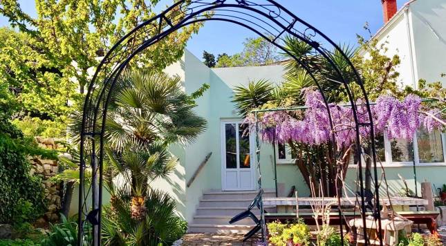 Das Haus liegt im beliebten Ferienort Nerezine auf der Insel Lošinj. Lebhafter Hafenort mit großartiger Bergkulisse auf der Insel Lošinj. Die überwiegend grüne und sehr buchtenreiche Insel Losinj verdankt ihre subtropisch anmutende Vegetation vieler Generationen von Seefahrern, die zahlreiche exotische Pflanzen als Mitbringsel aus fernen Ländern in die Heimat brachten und Parks mit Palmen, Agaven, Oleander und Orangenbäumen anlegten. Das idyllische Fischerdorf Nerezine ist ein beliebter Ferienort für Bootsbesitzer und Naturliebhaber, die von hier aus zu erlebnisreichen Touren über die Insel starten können. Entlang der Hafenpromenade befindet sich auch das Zentrum der touristischen Infrastruktur, das mit einem Einkaufszentrum mit Supermarkt, Restaurants und Cafés keine Wünsche offen lässt. Wer es lieber etwas ruhiger und authentischer mag, findet im alten Dorfkern mit dem an eine italienische Piazza erinnernden und von alten Bäumen umstandenen Hauptplatz malerisches inseltypisches Flair, dem die Cafés und angenehm überschatteten Bänke noch zusätzlichen Charme verleihen.