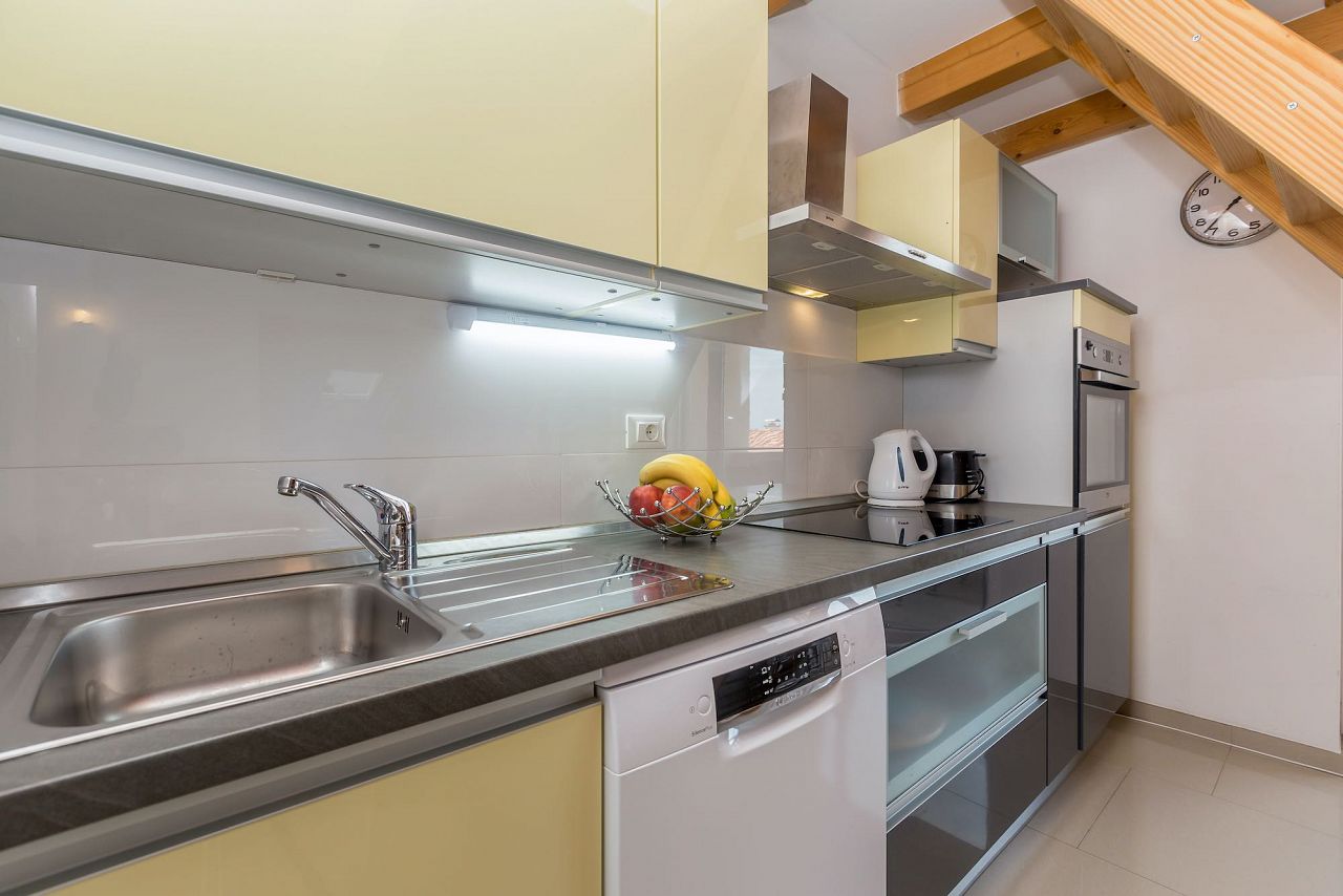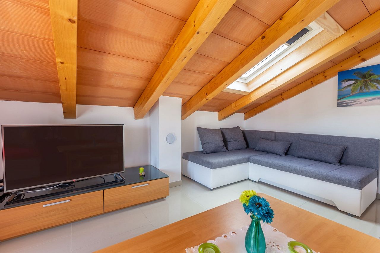 Das Haus liegt im beliebten Ferienort Nerezine auf der Insel Lošinj. Lebhafter Hafenort mit großartiger Bergkulisse auf der Insel Lošinj. Die überwiegend grüne und sehr buchtenreiche Insel Losinj verdankt ihre subtropisch anmutende Vegetation vieler Generationen von Seefahrern, die zahlreiche exotische Pflanzen als Mitbringsel aus fernen Ländern in die Heimat brachten und Parks mit Palmen, Agaven, Oleander und Orangenbäumen anlegten. Das idyllische Fischerdorf Nerezine ist ein beliebter Ferienort für Bootsbesitzer und Naturliebhaber, die von hier aus zu erlebnisreichen Touren über die Insel starten können. Entlang der Hafenpromenade befindet sich auch das Zentrum der touristischen Infrastruktur, das mit einem Einkaufszentrum mit Supermarkt, Restaurants und Cafés keine Wünsche offen lässt. Wer es lieber etwas ruhiger und authentischer mag, findet im alten Dorfkern mit dem an eine italienische Piazza erinnernden und von alten Bäumen umstandenen Hauptplatz malerisches inseltypisches Flair, dem die Cafés und angenehm überschatteten Bänke noch zusätzlichen Charme verleihen.
