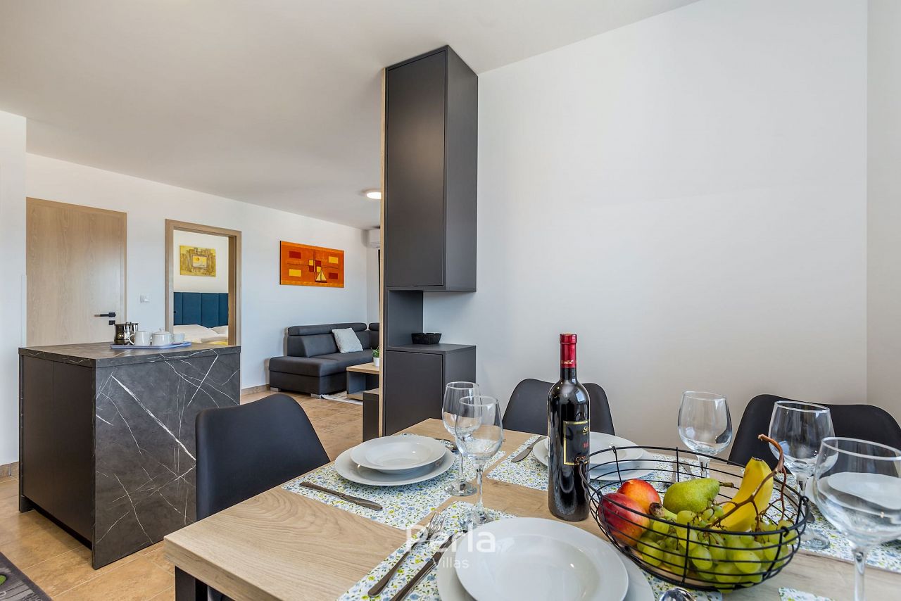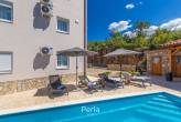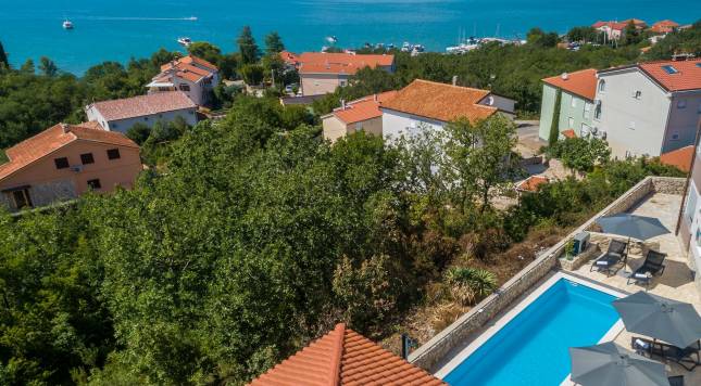 Die gemütliche Ferienwohnung liegt im Erdgeschoß und verwohnt mit 30 m2 großer angenehmen Terrasse mit herrlichem Meerblick, auf der Sie gemütlich Ihren Morgenkaffee genießen oder den Abend herrlich abklingen lassen können. Herzstück des Hauses ist der erfrischende Pool, der Ihnen jederzeit zur Verfügung steht. Sonnenliegen und Außendusche am Pool. Geräumige Wohnung mit 2 Schlafzimmer und 2 Badezimmer ist liebevoll eingerichtet. Die Küche ist voll ausgestattet, mit Geschirrspüler und Backofen. Ihnen steht die Waschmaschine im Badezimmer zur Verfügung. Die Wohnung ist klimatisiert (2 klimaanlagen) und hat Wi-Fi. Parkplatz direkt vor dem Haus. Es gibt die Möglichkeit, das Elektroauto über die normale Steckdose zu laden (bezahlbar). Die nächste Ladestation für Elektroautos gibt es im Ort Šilo (8 km entfernt).