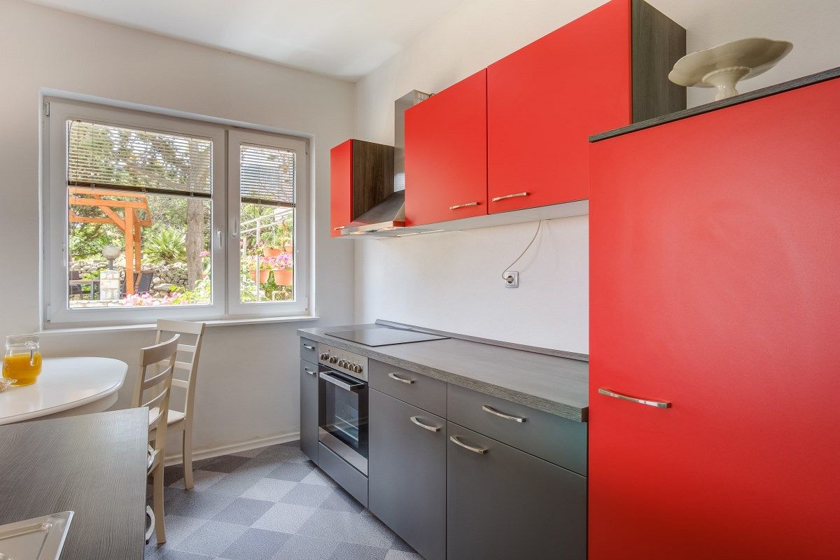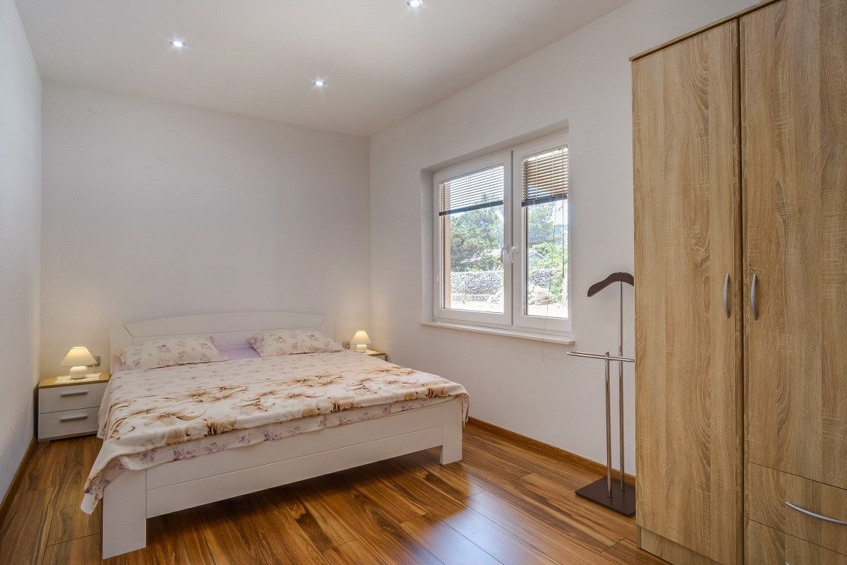 Das Haus liegt im beliebten Ferienort Nerezine auf der Insel Lošinj. Lebhafter Hafenort mit großartiger Bergkulisse auf der Insel Lošinj. Die überwiegend grüne und sehr buchtenreiche Insel Losinj verdankt ihre subtropisch anmutende Vegetation vieler Generationen von Seefahrern, die zahlreiche exotische Pflanzen als Mitbringsel aus fernen Ländern in die Heimat brachten und Parks mit Palmen, Agaven, Oleander und Orangenbäumen anlegten. Das idyllische Fischerdorf Nerezine ist ein beliebter Ferienort für Bootsbesitzer und Naturliebhaber, die von hier aus zu erlebnisreichen Touren über die Insel starten können. Entlang der Hafenpromenade befindet sich auch das Zentrum der touristischen Infrastruktur, das mit einem Einkaufszentrum mit Supermarkt, Restaurants und Cafés keine Wünsche offen lässt. Wer es lieber etwas ruhiger und authentischer mag, findet im alten Dorfkern mit dem an eine italienische Piazza erinnernden und von alten Bäumen umstandenen Hauptplatz malerisches inseltypisches Flair, dem die Cafés und angenehm überschatteten Bänke noch zusätzlichen Charme verleihen.