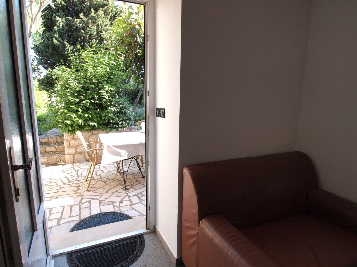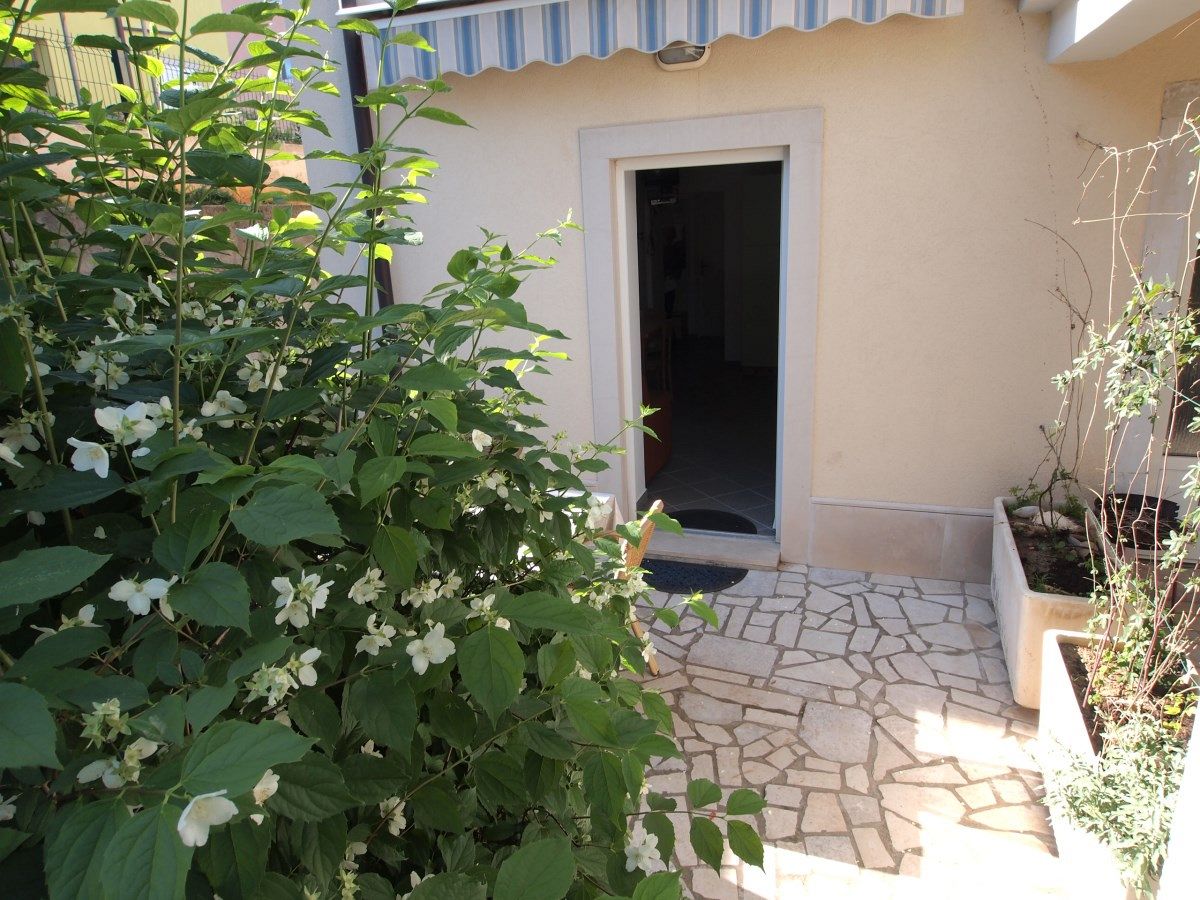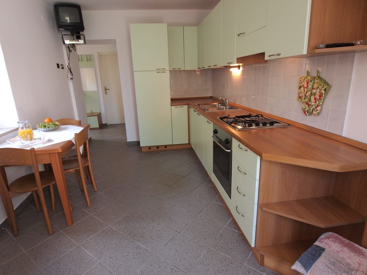 Diese schöne 2-Zimmer-Wohnung liegt im Erdgeschoß und hat einen eigenen Eingang und eine sehr angenehme Terrasse. Klima und Internet sind kostenlos. Das Interieur ist komplett und bequem ausgestattet. SAT-Anlage, auch mit deutschen Programmen. Das Haus liegt in ruhiger Lage nur 200m vom Strand. Schlafen: im Schlafzimmer schlafen zwei Personen auf dem Doppelbett, die dritte Person schläft auf der Schlafsofa in der Küche. Parkplatz direkt vor dem Haus. Im Haus gibt es noch zwei Ferienwohnungen. Die Gastgeberfamilie lebt im Haus.