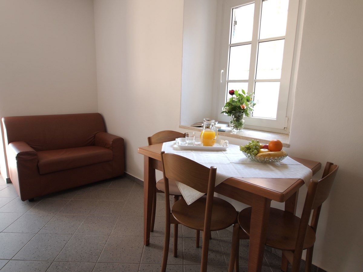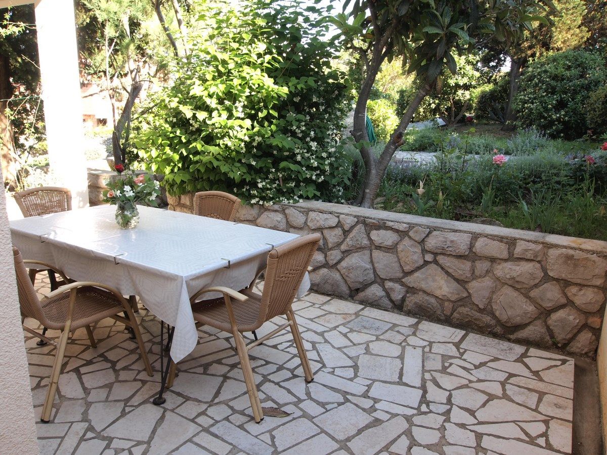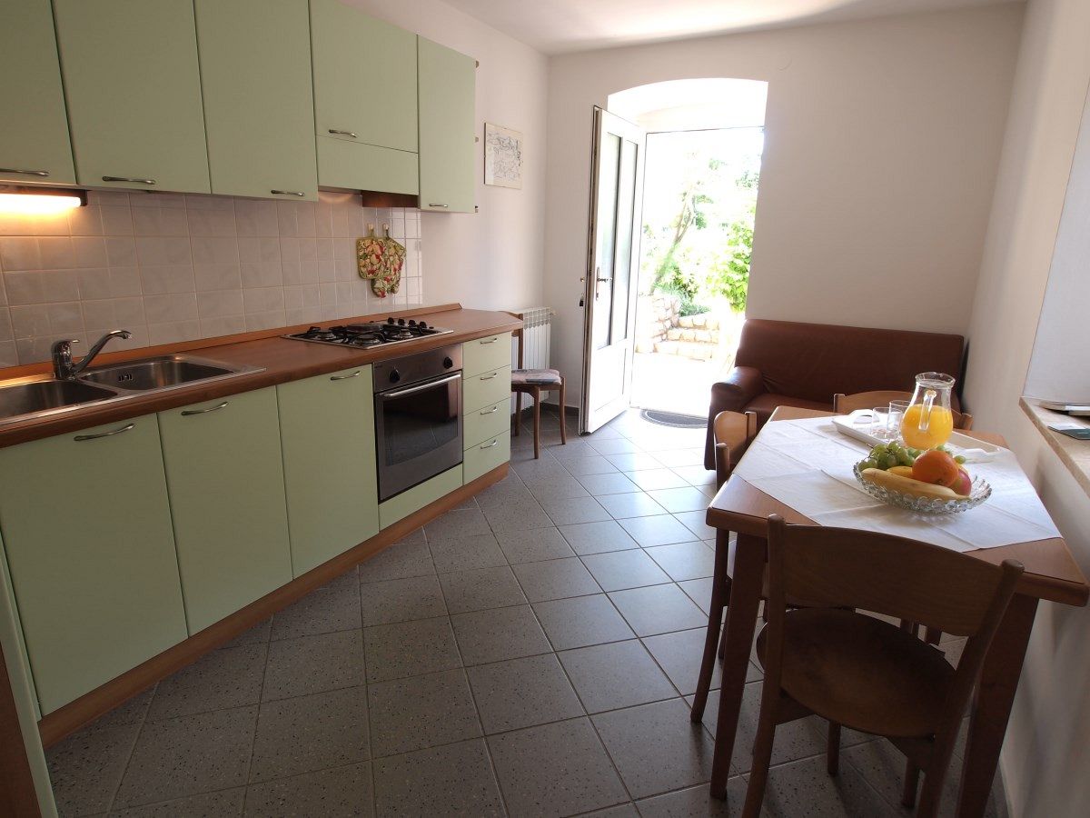 Diese schöne 2-Zimmer-Wohnung liegt im Erdgeschoß und hat einen eigenen Eingang und eine sehr angenehme Terrasse. Klima und Internet sind kostenlos. Das Interieur ist komplett und bequem ausgestattet. SAT-Anlage, auch mit deutschen Programmen. Das Haus liegt in ruhiger Lage nur 200m vom Strand. Schlafen: im Schlafzimmer schlafen zwei Personen auf dem Doppelbett, die dritte Person schläft auf der Schlafsofa in der Küche. Parkplatz direkt vor dem Haus. Im Haus gibt es noch zwei Ferienwohnungen. Die Gastgeberfamilie lebt im Haus.